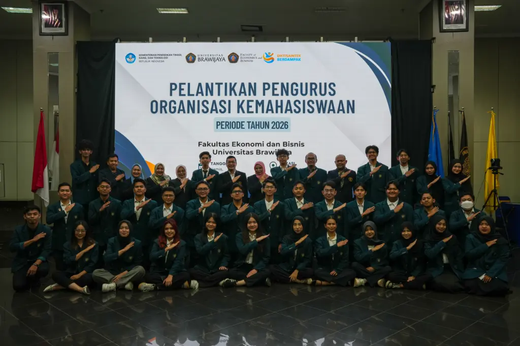 Malang, 8 Januari 2026 — Fakultas Ekonomi dan Bisnis Universitas Brawijaya (FEB UB) resmi melaksanakan Pelantikan Pengurus Organisasi Kemahasiswaan Periode 2026 sebagai bentuk pengukuhan kepemimpinan baru organisasi mahasiswa di lingkungan FEB UB. Kegiatan diawali dengan pembacaan Surat Keputusan (SK) Pengangkatan Pengurus Organisasi Kemahasiswaan Tahun 2026 oleh Dr. Nurul Badriyah, SE., ME, selaku Wakil Dekan Bidang
