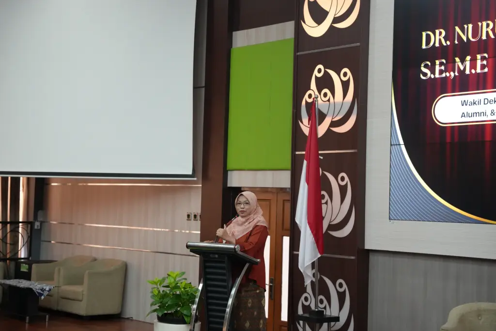 Acara dibuka oleh sambutan Wakil Dekan Bidang Kemahasiswaan, Alumni, dan Kewirausahaan Mahasiswa, Dr. Nurul Badriyah, S.E., M.E. Beliau menegaskan kebanggaan atas kiprah alumni di industri kreatif yang tengah bertumbuh pesat. “Dengan film, kita bisa belajar banyak dan berbicara banyak. Industri film memacu produktivitas—termasuk produktivitas ekonomi. Dalam hidup, jangan buru-buru bilang ‘cut’; nikmati dialognya, siapa tahu ada turning point,” ujarnya.