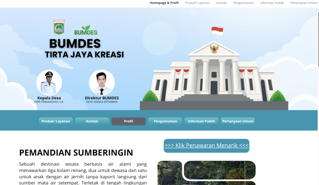 Website BUMDes Desa Wringinsongo dirancang sebagai sarana pengelolaan informasi yang memuat profil kelembagaan, unit usaha, serta berbagai aktivitas BUMDes. Melalui penyajian informasi yang terstruktur, website ini diharapkan mampu mendukung kinerja pengelola BUMDes sekaligus memudahkan masyarakat dalam mengakses informasi terkait usaha desa.