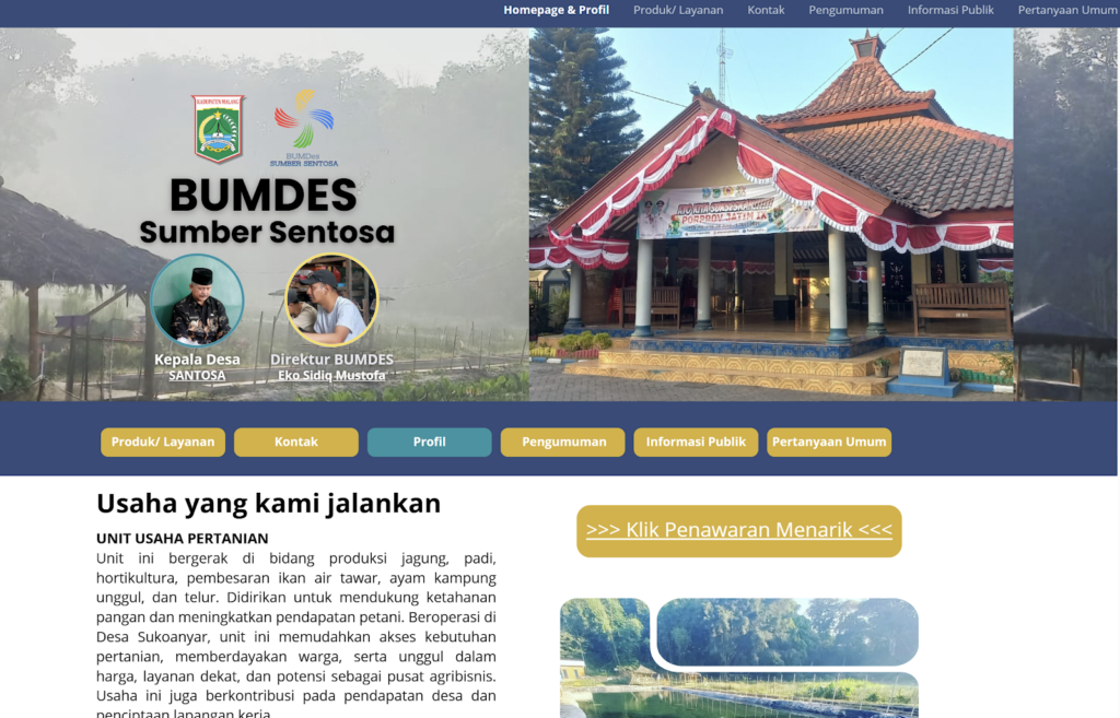 Pengembangan website ini bertujuan untuk menghadirkan sistem informasi yang terintegrasi dan mudah diakses, sehingga mampu meningkatkan efektivitas pengelolaan BUMDes sekaligus memperluas jangkauan promosi produk dan layanan desa. Melalui platform digital ini, berbagai informasi strategis seperti profil kelembagaan, unit usaha, potensi unggulan, serta dokumentasi kegiatan dapat disajikan secara transparan dan profesional.