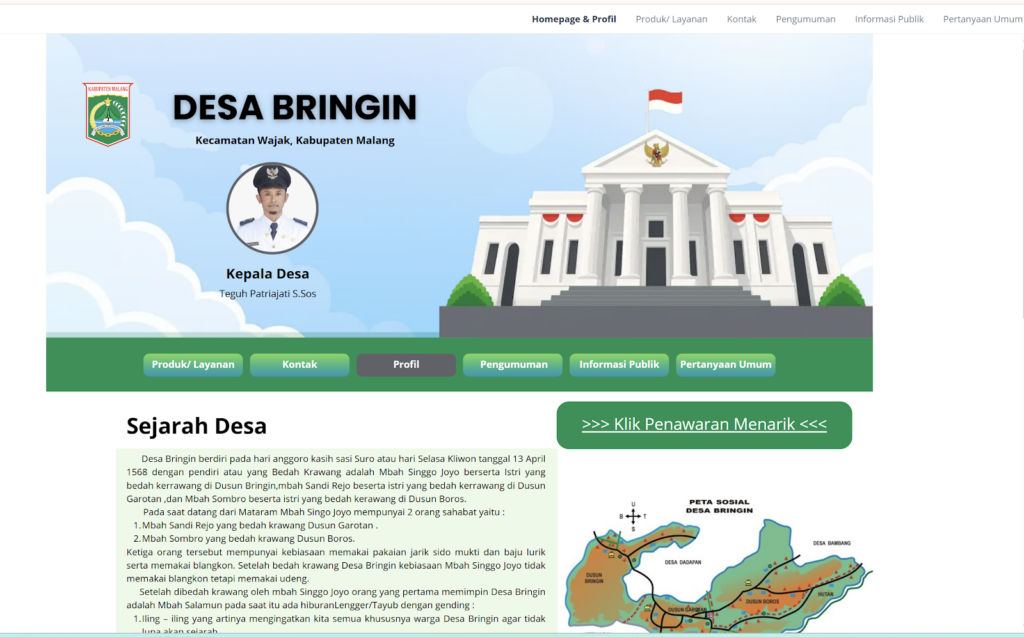 Pengelolaan Badan Usaha Milik Desa (BUMDes) yang berorientasi jangka panjang membutuhkan sistem informasi yang mampu mendukung keteraturan dan arah pengembangan usaha. Berangkat dari kebutuhan tersebut, dilaksanakan kegiatan pembuatan Website BUMDes Desa Bringin, Kabupaten Malang, yang didampingi oleh dosen Departemen Manajemen, A. Muhamad Jazuli, S.E., M.M. Kegiatan ini menjadi langkah awal dalam menyiapkan fondasi digital pengelolaan usaha desa.