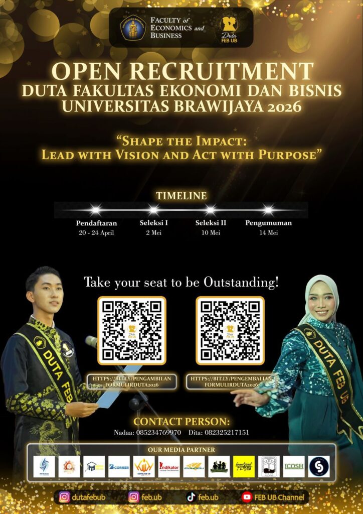Ini adalah kesempatan emas buat kamu yang pengen berkembang, nunjukin potensi terbaik, dan jadi representasi mahasiswa FEB UB yang berprestasi dan berintegritas.