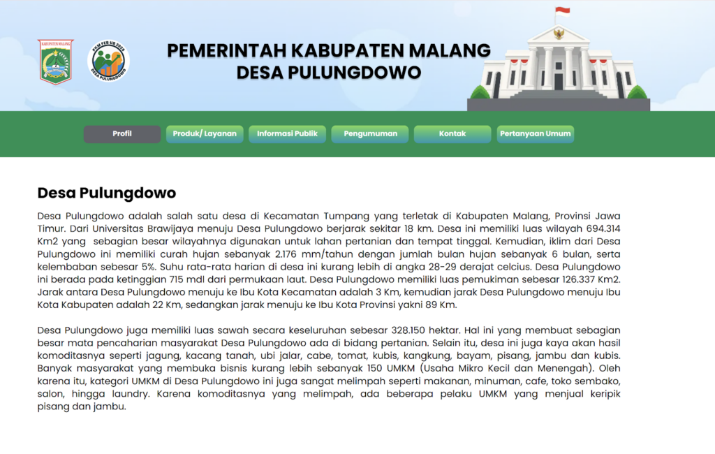 Melalui pengembangan Website BUMDes Desa Pulungdowo, diharapkan BUMDes semakin siap menghadapi tantangan pengelolaan usaha desa ke depan, sekaligus memperkuat perannya dalam mendukung perekonomian dan kemandirian Desa Pulungdowo, Kabupaten Malang.
