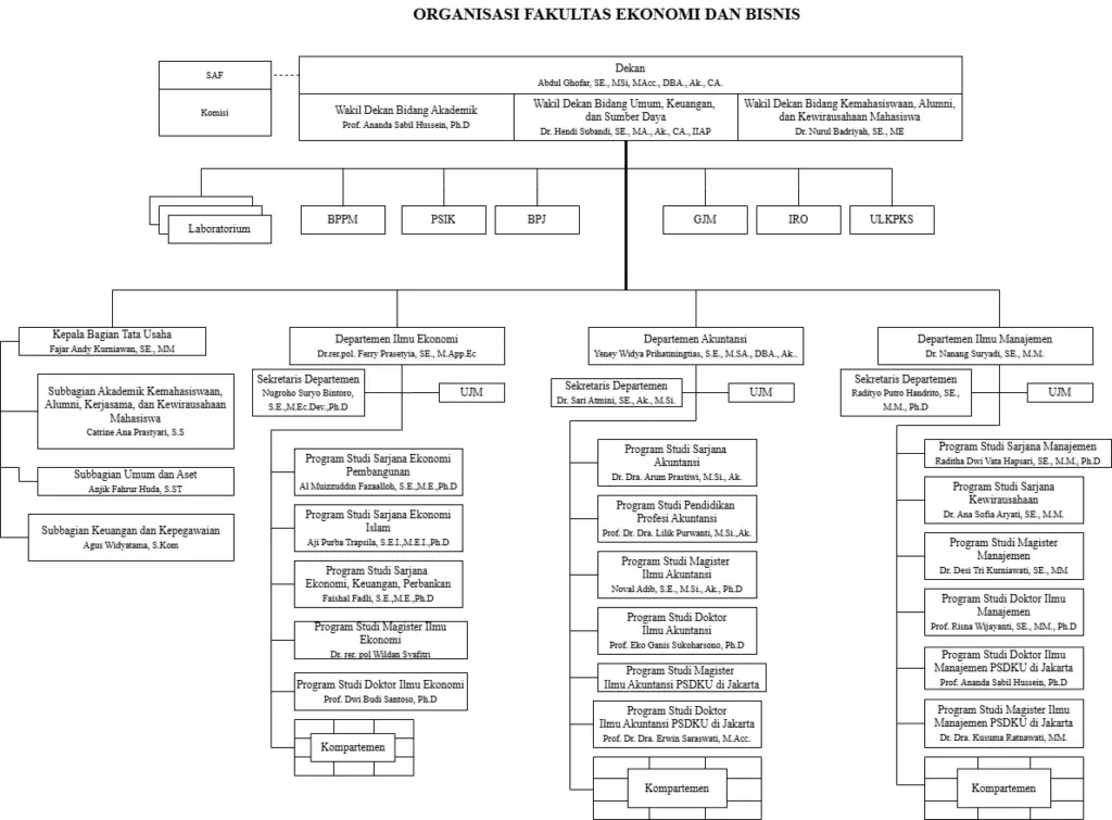- Wakil Dekan Bidang Umum, Keuangan, dan Sumber Daya; dan