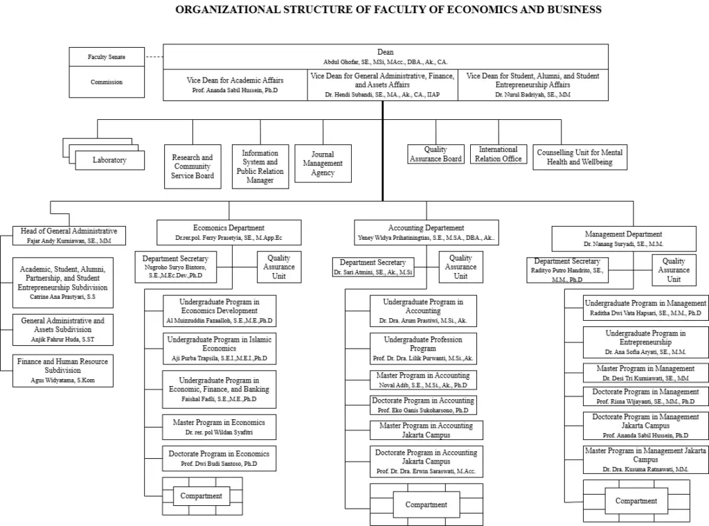 Struktur Organisasi FEB UB dibentuk bedasarkan Surat Peraturan Rektor Universitas Brawijaya Nomor 13 Tahun 2023 tentang Perubahan Atas Peraturan Ektor Nomor 16 Tahun 2022 Tentang Organisasi Dan Tata Kerja Fakultas Ekonomi Dan Bisnis (File dapat didownload disini)