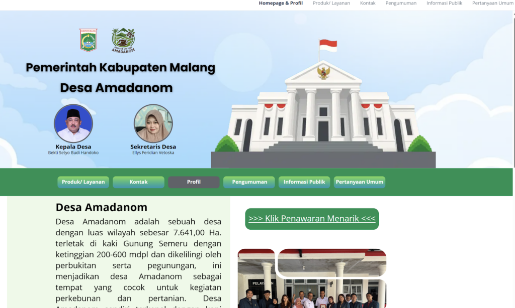 Inovasi pengelolaan usaha menjadi kunci pengembangan Badan Usaha Milik Desa (BUMDes) agar mampu memberikan nilai tambah bagi masyarakat. Hal tersebut diwujudkan melalui kegiatan pembuatan Website BUMDes Desa Amadanom, Kabupaten Malang, yang dilaksanakan oleh dosen Departemen Manajemen, Kardina Yudha Parwati, S.E., M.M. Kegiatan ini bertujuan mendorong pemanfaatan teknologi digital sebagai sarana inovasi layanan usaha desa.